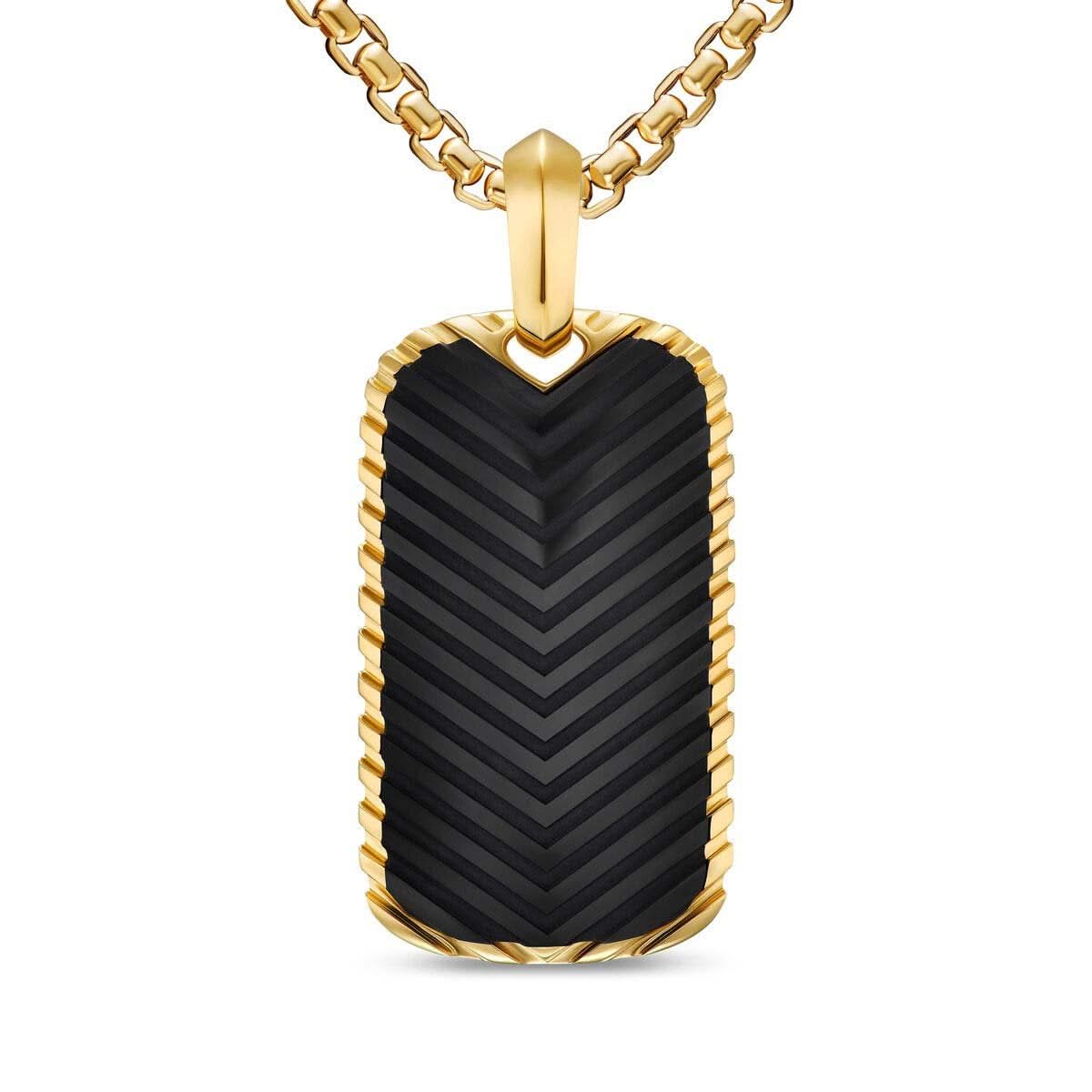 DAVID YURMAN Chevron Tag in 18K Yellow Gold with Black Onyx, 34mm