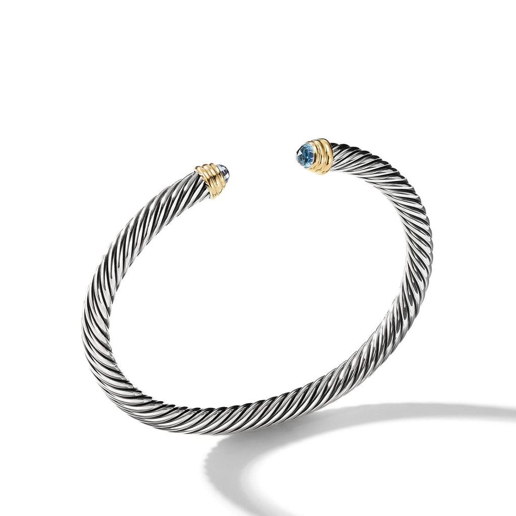 DAVID YURMAN Classic Cable Bracelet in Sterling Silver with 14K Yellow Gold and Blue Topaz, 5mm