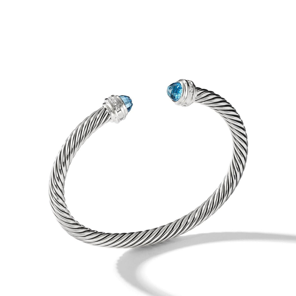 DAVID YURMAN Classic Cable Bracelet in Sterling Silver with Blue Topaz and Diamonds, 5mm