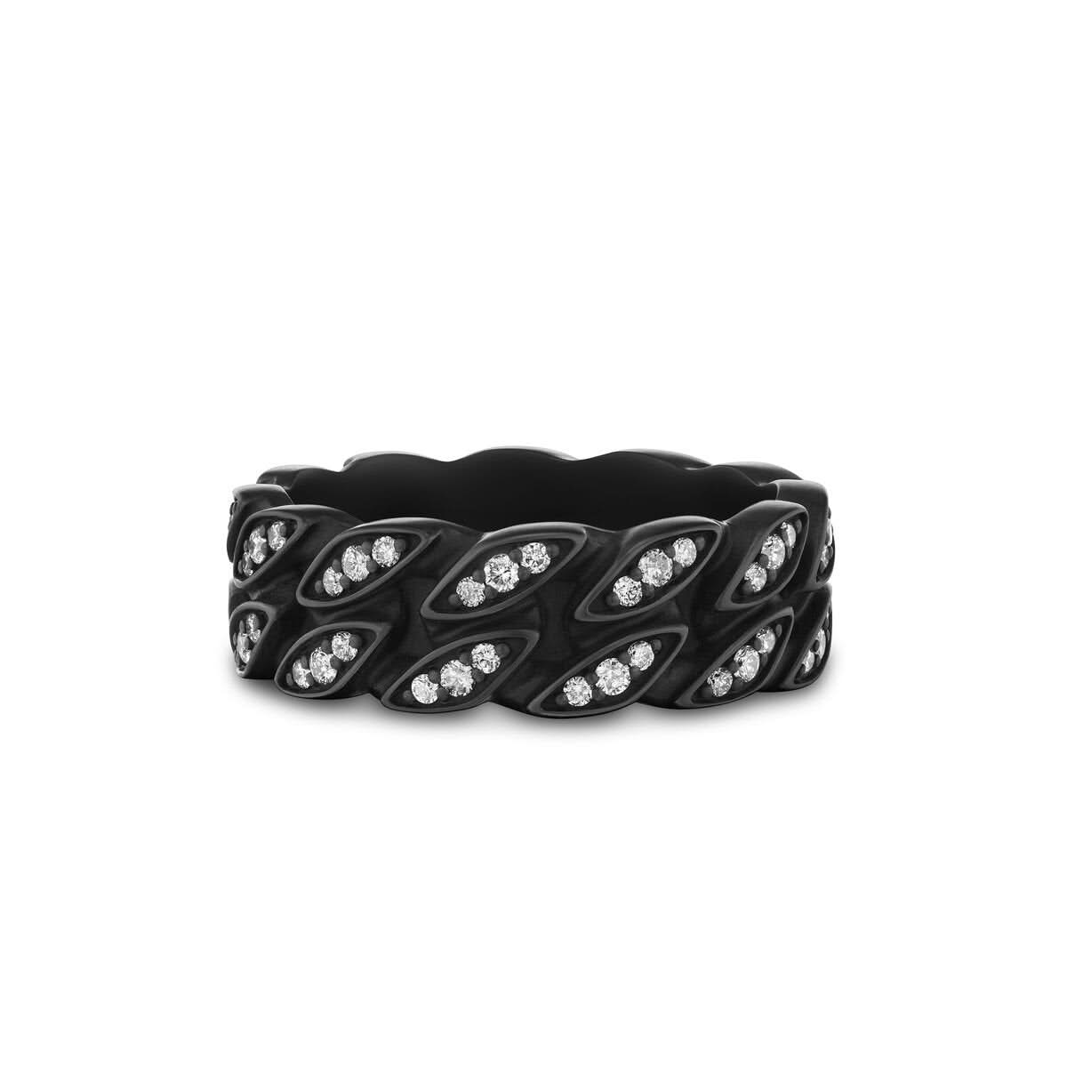 DAVID YURMAN Curb Chain Band Ring in Black Titanium with Diamonds, 8mm