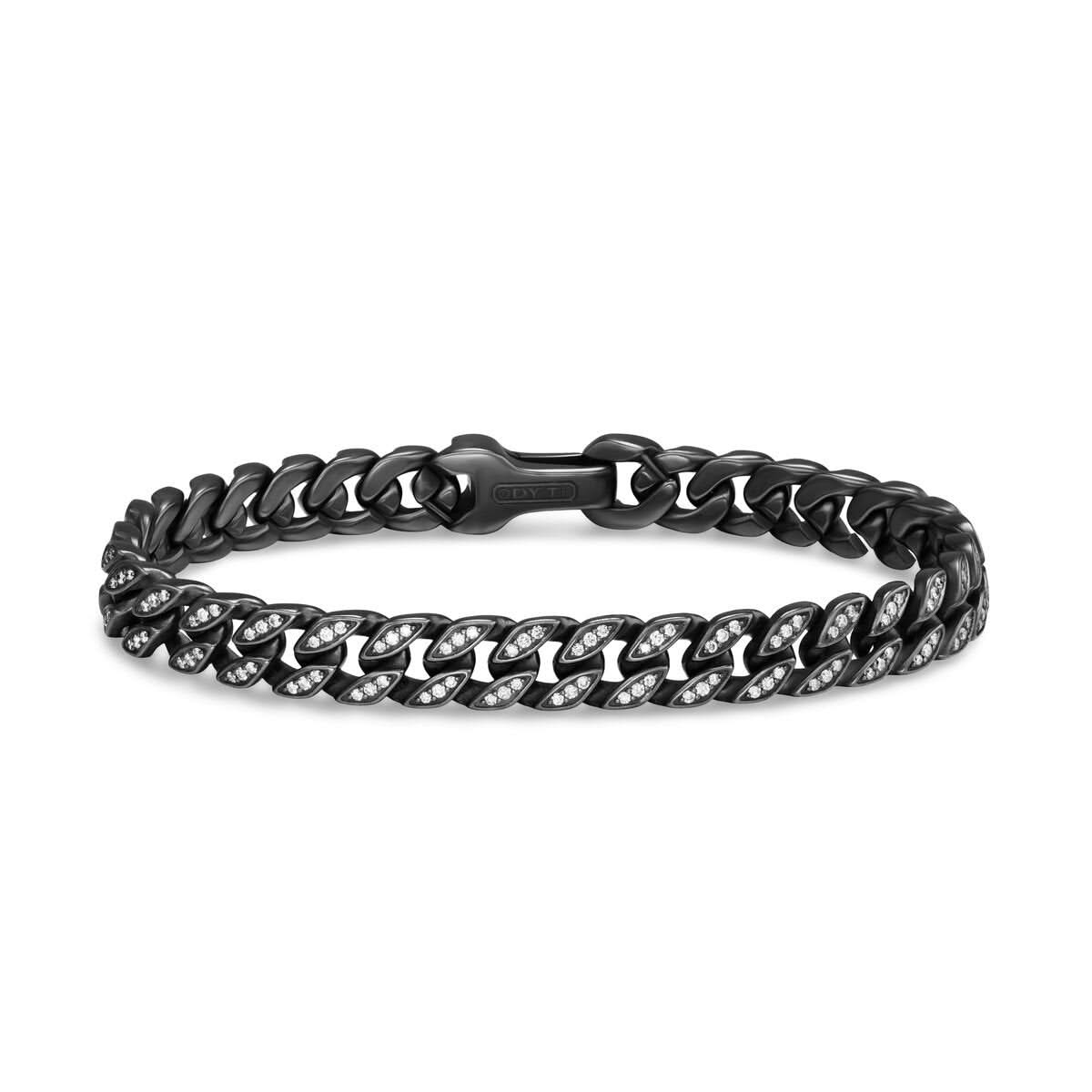 DAVID YURMAN Curb Chain Bracelet in Black Titanium with Diamonds, 8mm