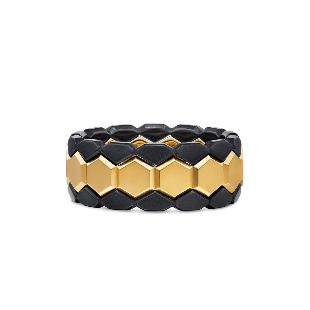 DAVID YURMAN Hex Stack Ring in 18K Yellow Gold with Black Titanium, 9.3mm