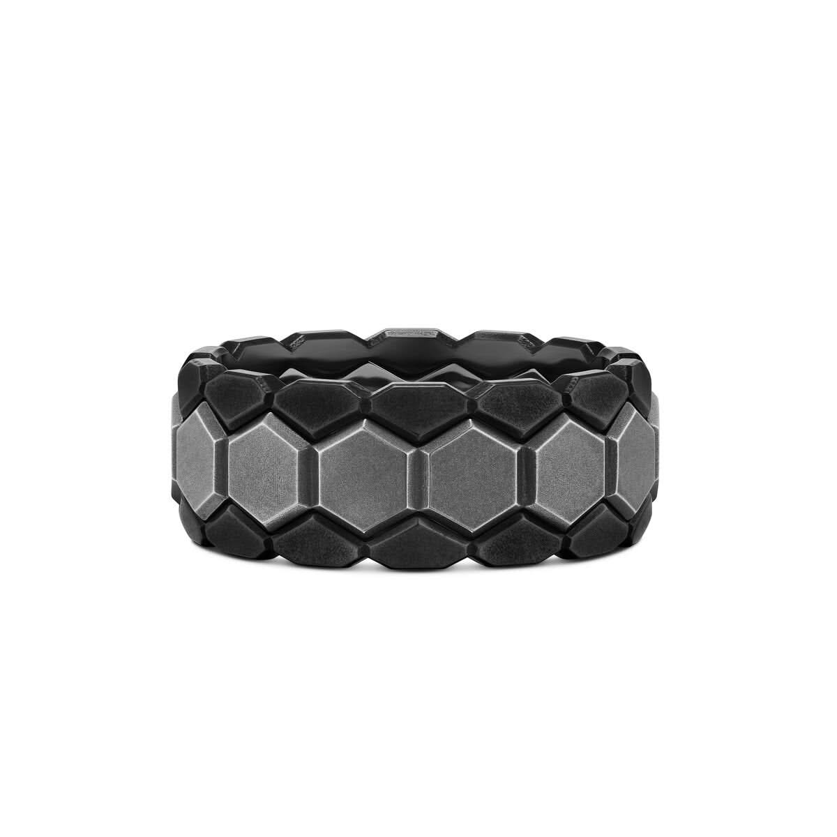 DAVID YURMAN Hex Stack Ring in Black Titanium with Grey Titanium, 9.3mm