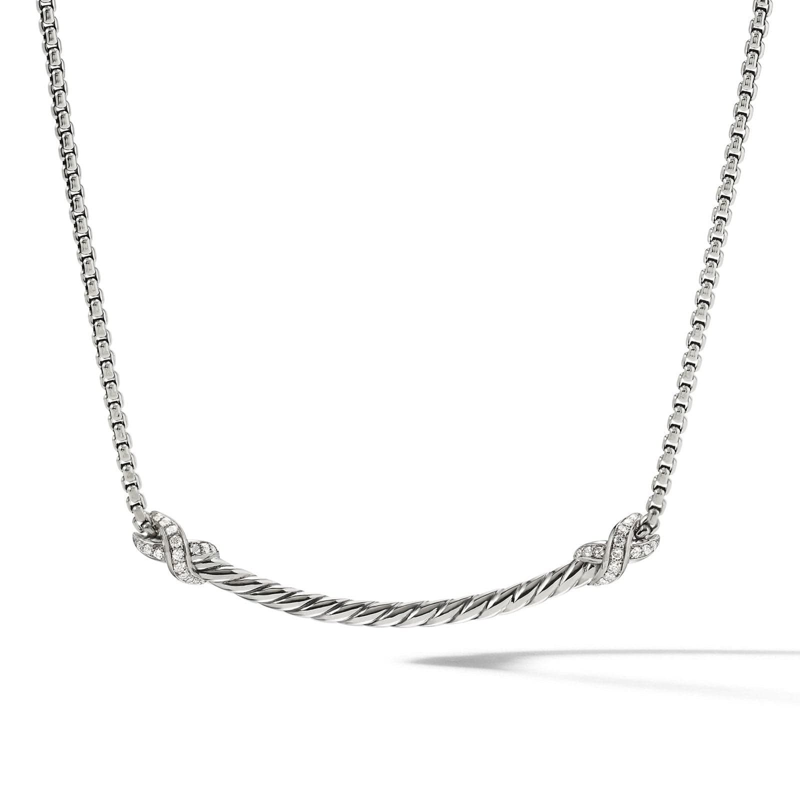 DAVID YURMAN Petite X Bar Station Necklace in Sterling Silver with Diamonds, 47.7mm