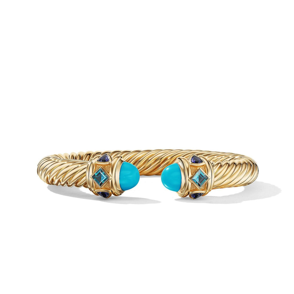 DAVID YURMAN Renaissance® Cablespira Bracelet in 18K Yellow Gold with Turquoise, Hampton Blue Topaz, and Iolite, 9mm