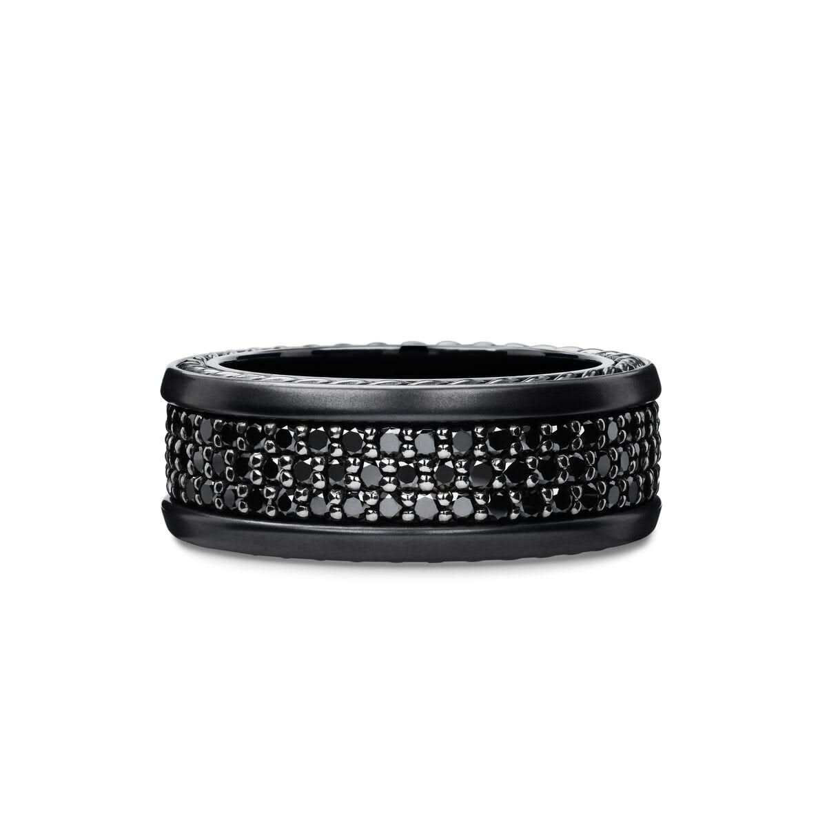 DAVID YURMAN Streamline® Three Row Band Ring in Black Titanium with Black Diamonds, 8.5mm