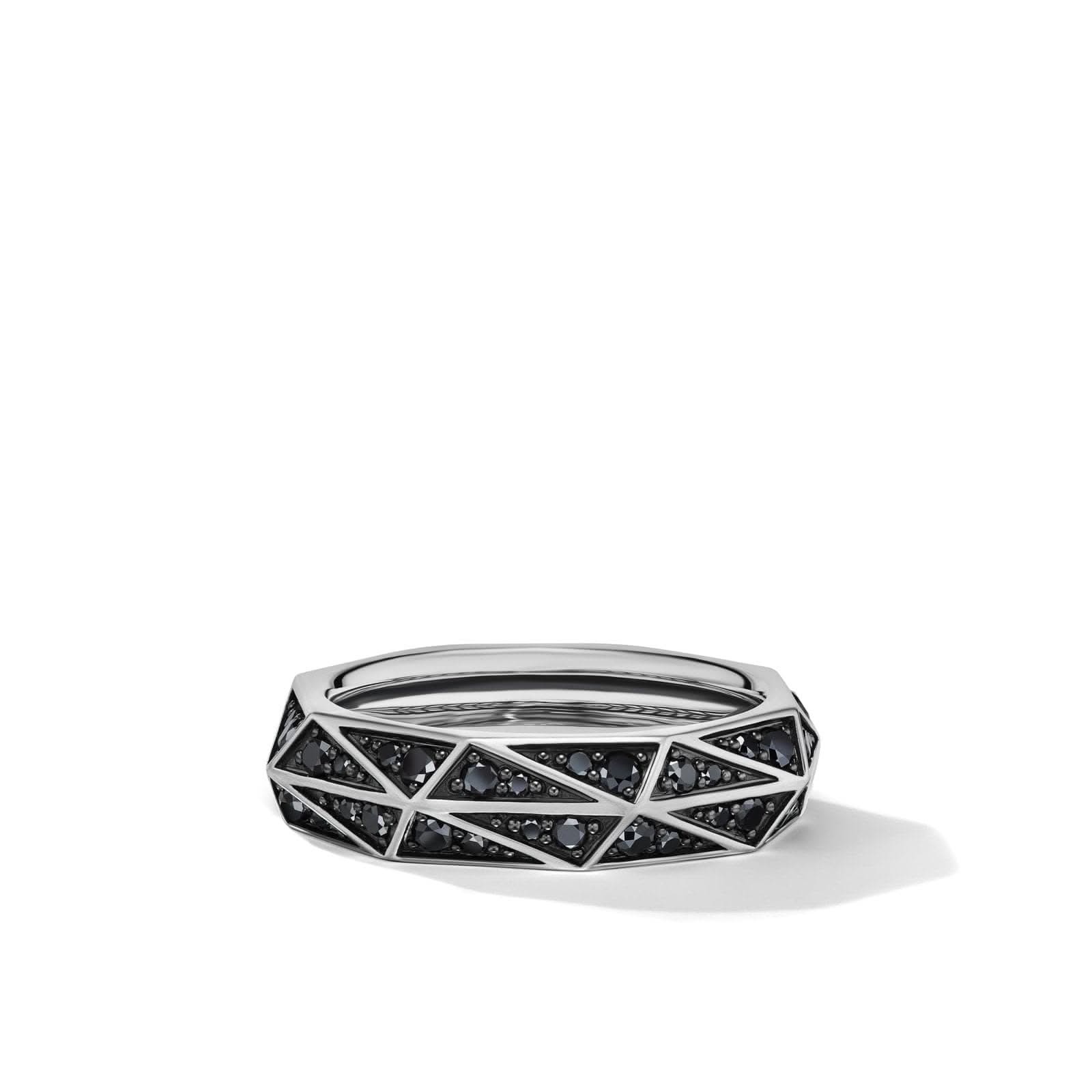 DAVID YURMAN Torqued Faceted Band Ring in Sterling Silver with Black Diamonds, 6mm