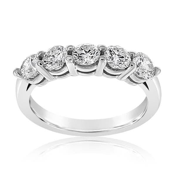 14K white gold diamond band from the Reis-Nichols Collection. The band features 11 round brilliant cut diamonds weighing .75 ctw. Size 6.5 in stock now. Special order sizes also available.