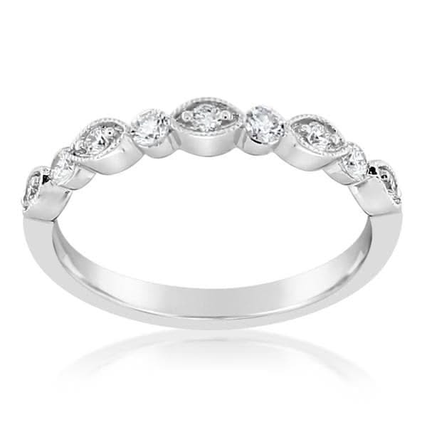 14K white gold diamond band from the Reis-Nichols Collection. The band features 9 round brilliant cut diamonds weighing .25 ctw set in alternating marquise shapes. Size 6.5 in stock now. Special order sizes also available.