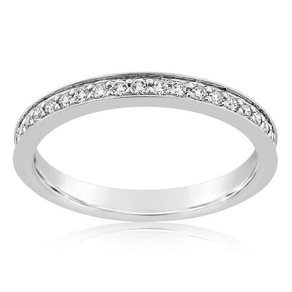 14K white gold diamond band from the Reis-Nichols Collection. The ring features 17 round brilliant cut diamonds weighing .35 ctw. Special order sizes available. Pricing may vary with size of ring.