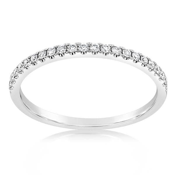 14K white gold diamond band from the Reis-Nichols Collection. The ring features 13 round brilliant cut diamonds weighing .75 ctw. Special order sizes available. Pricing may vary with size of ring.