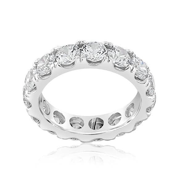 14K white gold diamond eternity band from the Reis-Nichols Collection. The band features 15 round brilliant cut diamonds weighing approximately 5 ctw. Please call or email for size information and availability.
