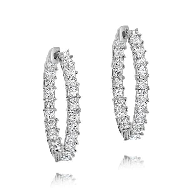 14K white gold diamond inside-outside hoop earrings from the Reis-Nichols Collection. The earrings feature 54 princess cut diamonds weighing 3.52 ctw.