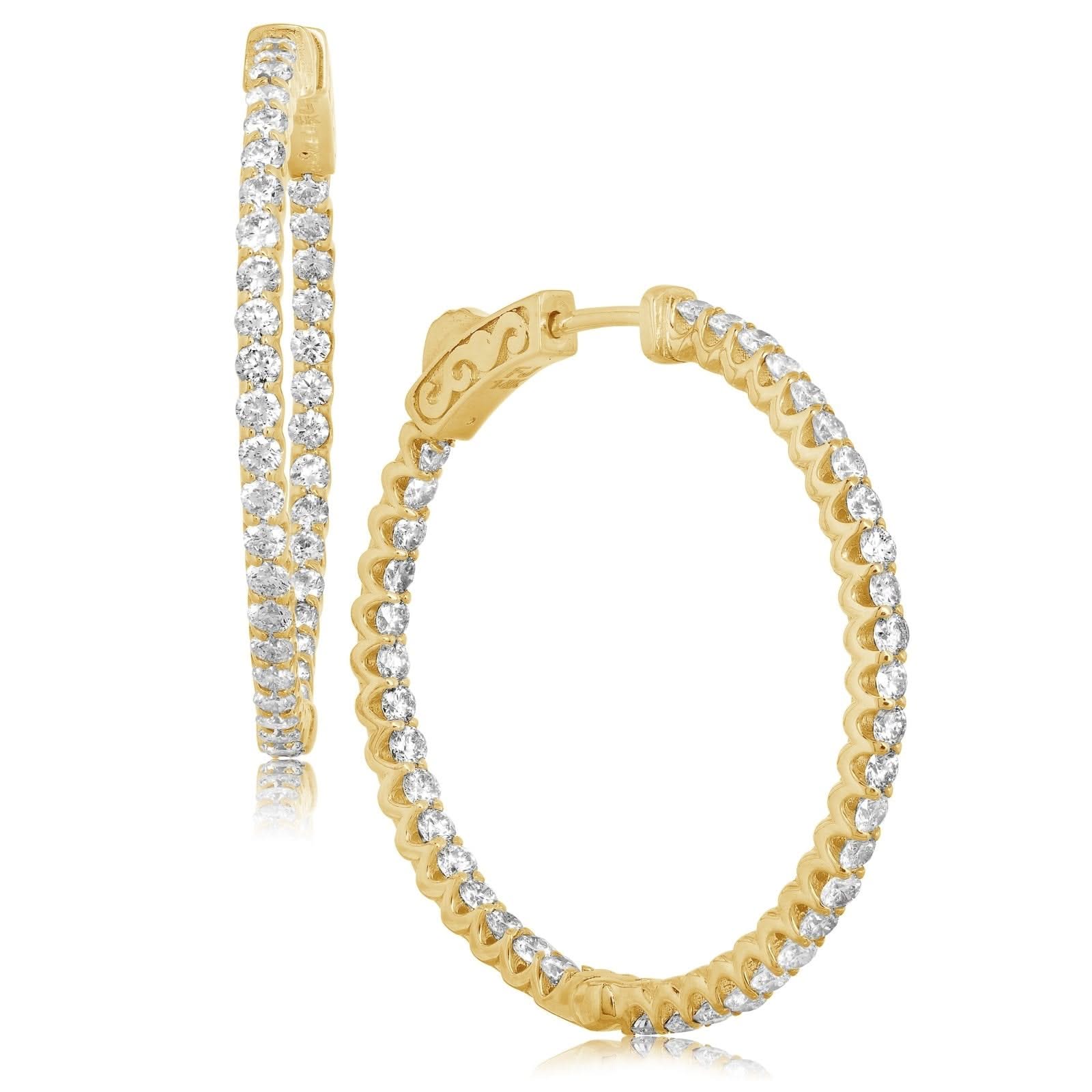14K yellow gold inside outside diamond hoop earrings from the Reis-Nichols Collection. The earrings feature 78 round brilliant cut diamonds weighing over 1 1/2ctw and are approximately 29.5mm in diameter.