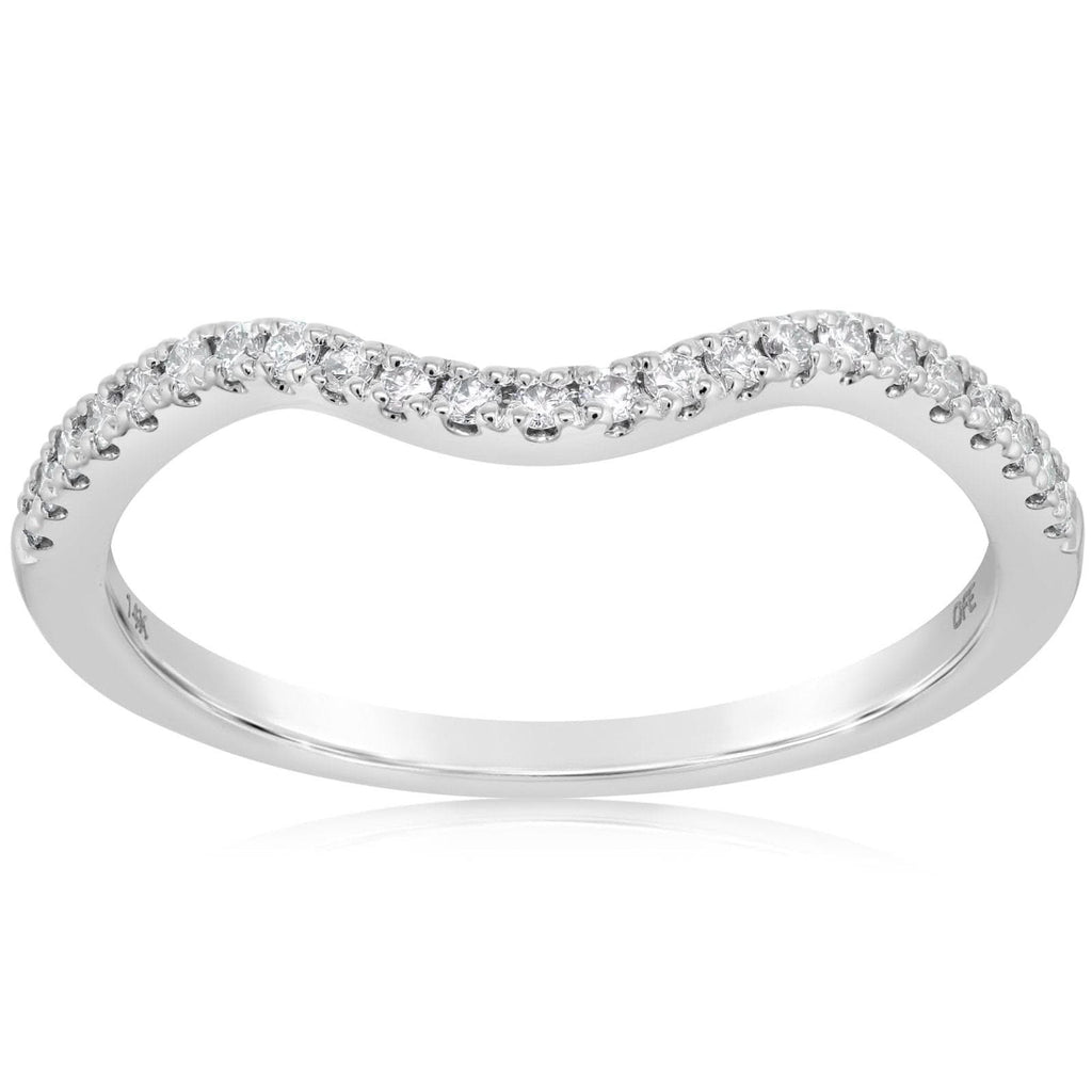 14K white gold diamond contour band from the Reis-Nichols Collection. The band features 27 brilliant round diamonds weighing .16 ctw. Size 6.5 in stock. Special order sizes also available. Prices may vary with size.