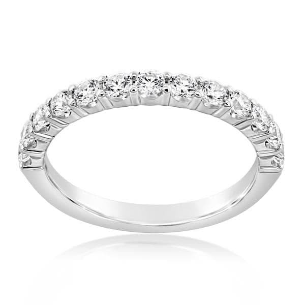 One 18K white gold diamond wedding band from the Reis-Nichols Collection. The band features 13 round brilliant cut diamonds weighing 3/4 ctw. Size 6.5 in stock now. Special order sizes also available.