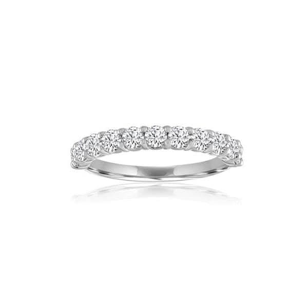 14K white gold diamond wedding band from the Reis-Nichols Collection. The band features 11 round brilliant cut diamonds weighing approximately 1 ctw. Please call or email for size information and availability.