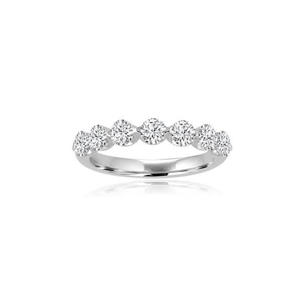 14k white gold diamond wedding band from the Reis-Nichols Collection. The band features seven round brilliant cut diamonds weighing approximately 1ctw. Please call or email for size information and availability.