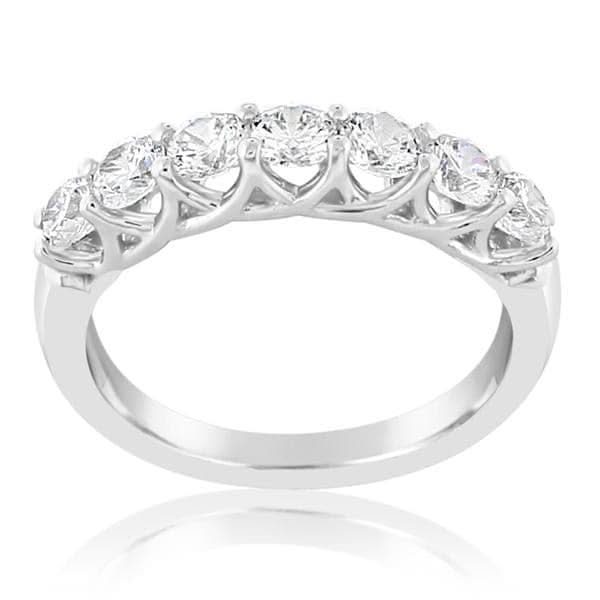 14k white gold diamond wedding band from the Reis-Nichols Collection. The band features seven round brilliant cut diamonds weighing approximately 3/4 ctw. Please call or email for size information and availability.