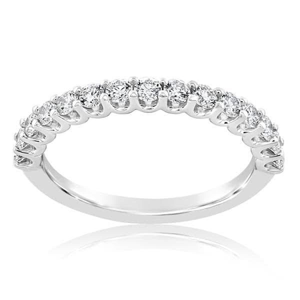 14K white gold diamond wedding band from the Reis-Nichols Collection. The band features 15 round brilliant cut diamonds weighing approximately .60 ctw. Size 7 in stock now. Special order sizes also available. Pricing may vary with size of ring.