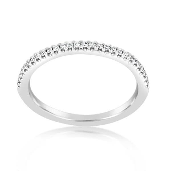 14K white gold diamond wedding band from the Reis-Nichols Collection. The band features 28 round brilliant cut diamonds weighing .15 ctw. Size 6.5 in stock now. Special order sizes also available. Pricing may vary with size of ring.