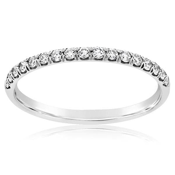 Platinum diamond wedding band from the Reis-Nichols Collection. The band features 15 round brilliant cut diamonds weighing .50 ctw. Size 6.5 in stock now. Special order sizes also available. Pricing may vary with size of ring.
