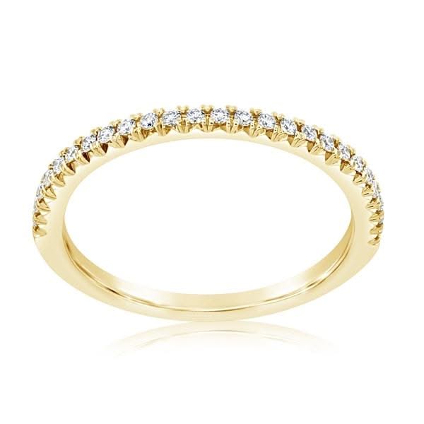 14K yellow gold diamond wedding band from the Reis-Nichols Collection. The band features 25 round brilliant cut diamonds weighing .15 ctw. Size 6.5 in stock now. Special order sizes also available. Pricing may vary with size of ring.
