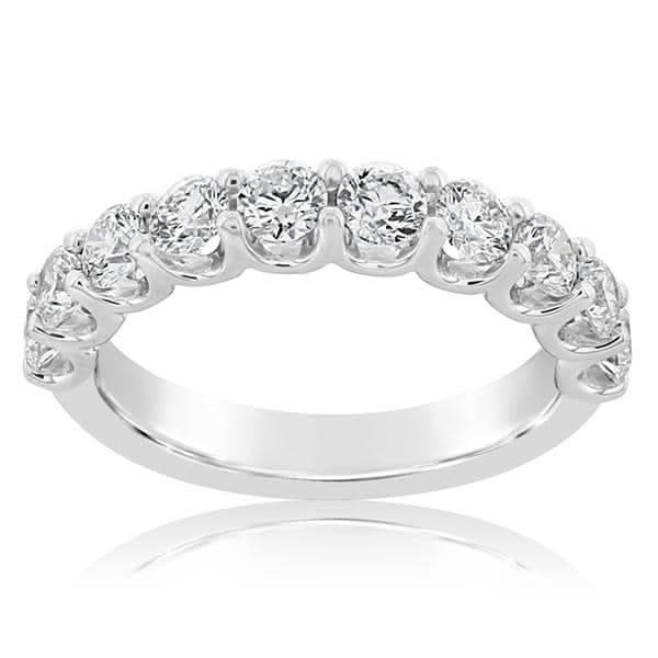 14K white gold diamond wedding band from the Reis-Nichols Collection. The band features 10 round brilliant cut diamonds weighing approximately 1.40 ctw. Size 7 in stock now. Special order sizes also available. Pricing may vary with size of ring.