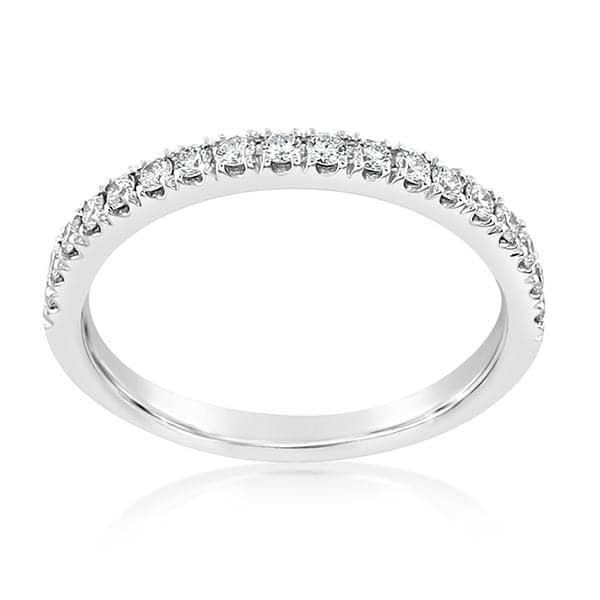 14K white gold diamond wedding band from the Reis-Nichols Collection. The band features 20 round brilliant cut diamonds weighing .30 ctw. Size 7 in stock now. Special order sizes also available. Pricing may vary with size of ring.