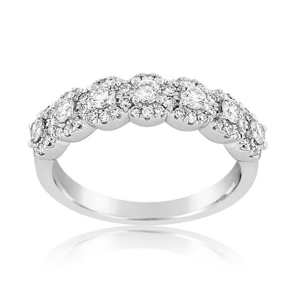 14K yellow gold diamond wedding band from the Reis-Nichols Collection. The band features 17 round brilliant cut diamonds weighing .35 ctw. Size 6.5 in stock now. Special order sizes also available. Pricing may vary with size of ring.