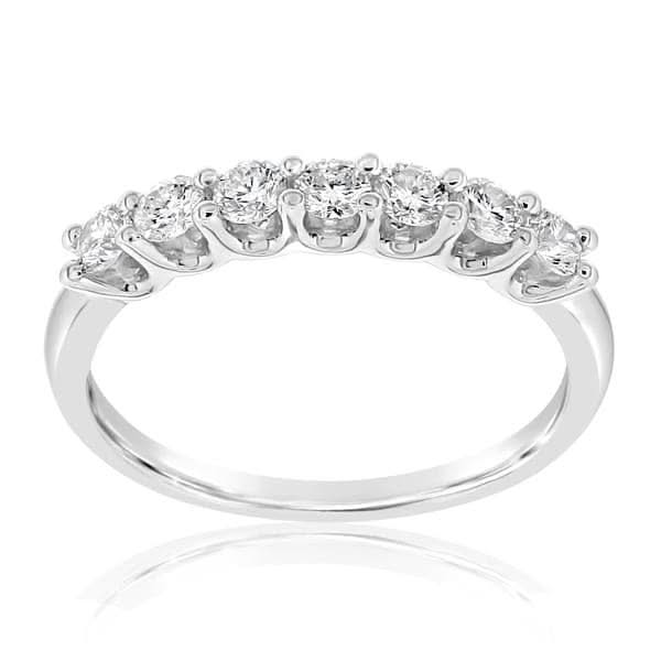 14K white gold diamond wedding band from the Reis-Nichols Collection. The ring features 11 round brilliant cut diamonds weighing .34 ctw. Size 6.5 in stock now. Special order sizes also available.