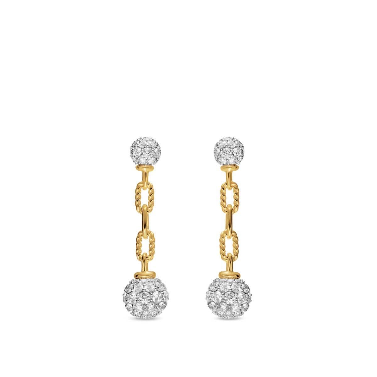 DY Madison® Pavé Bead Drop Earrings in 18K Yellow Gold with Diamonds, 33mm