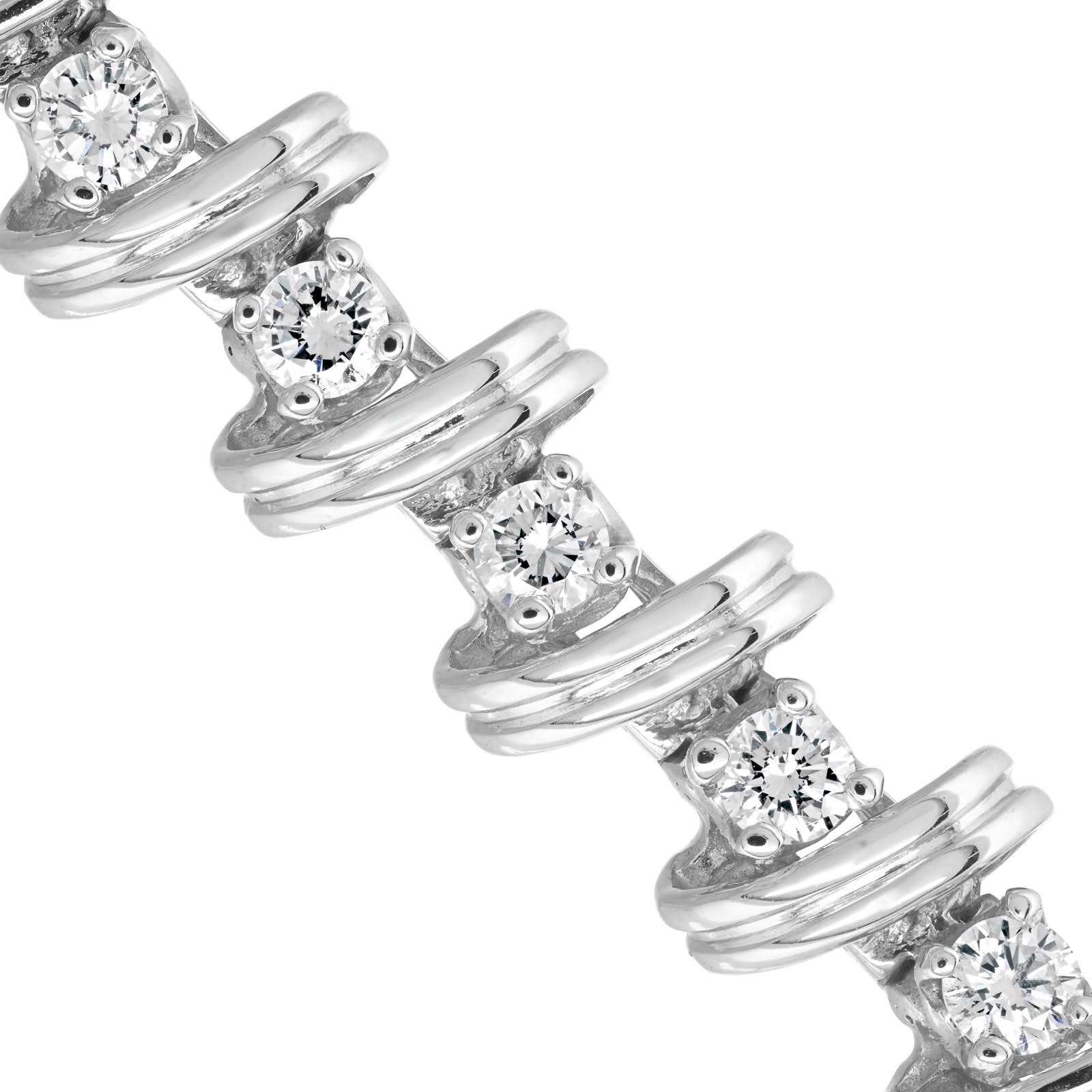 14K white gold and diamond bracelet. The bracelet features 25 round brilliant cut diamonds weighing an estimated 2.75 ctw. The bracelet measures 6.75" in length and 7mm in width. The bracelet features an insert clasp and figure eight safety.