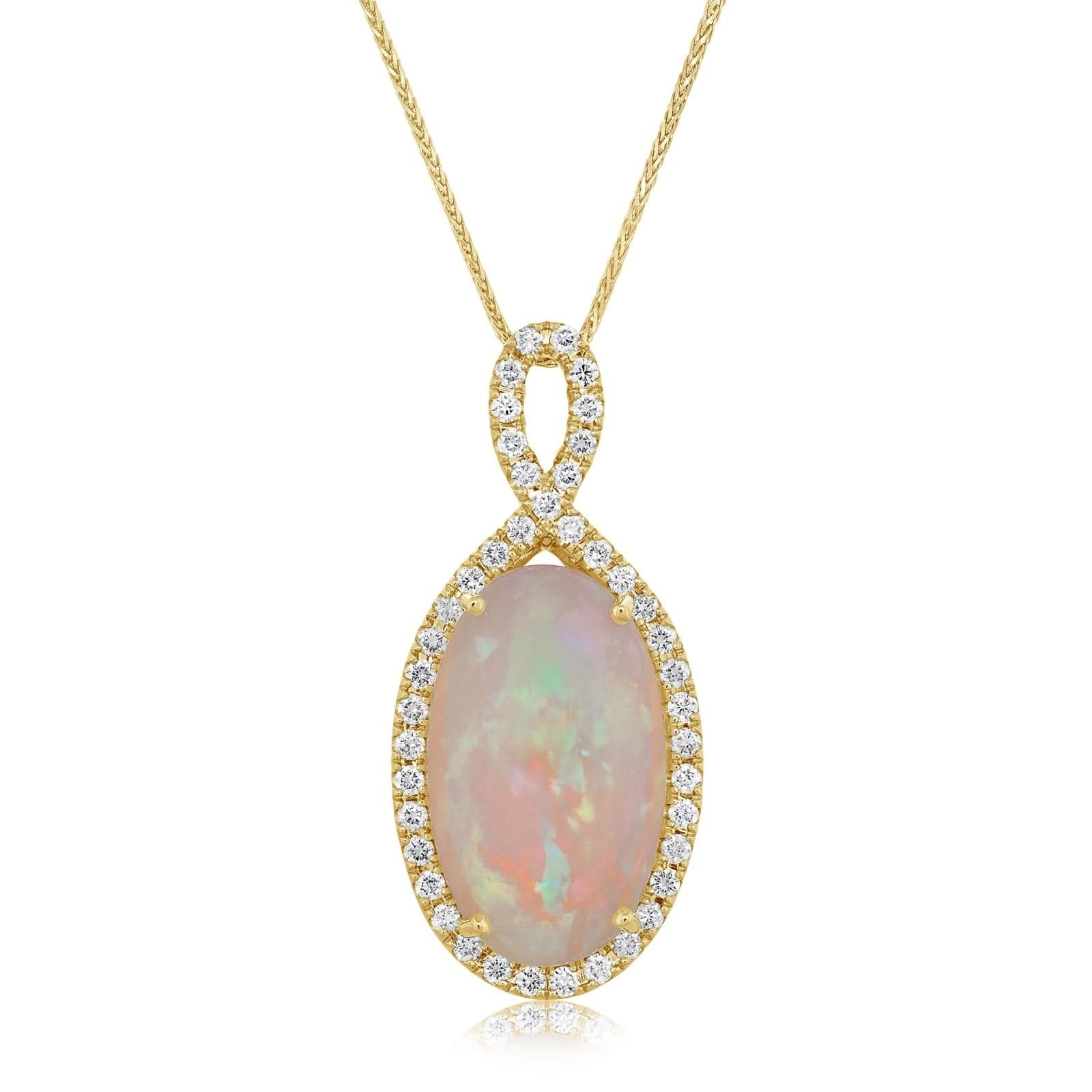 Ethiopian Opal & Diamond Pendant Necklace