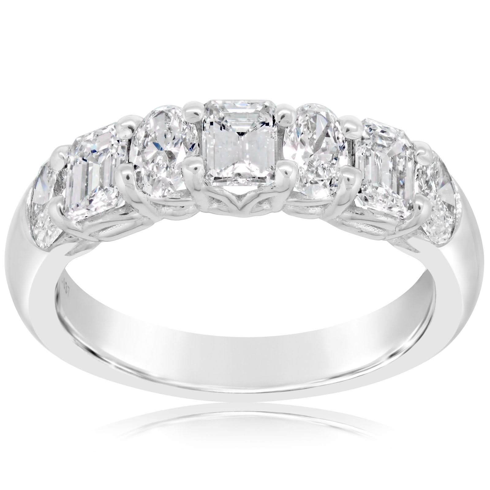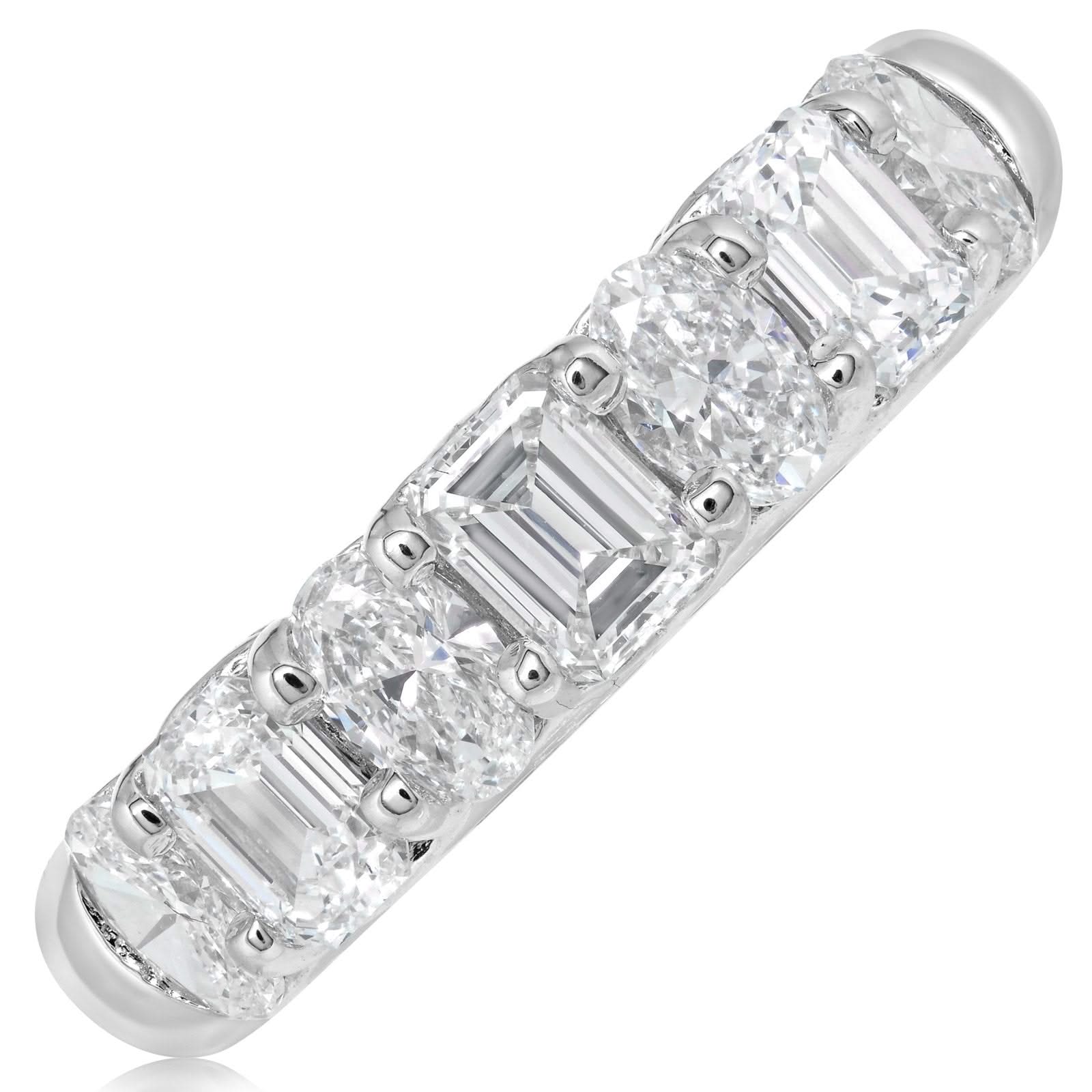 Platinum emerald and oval cut diamond band featuring three emerald cut diamonds weighing .92 ctw, and four oval cut diamonds weighing .78 ctw. Size 6.75 in stock. Designed by JB Star.