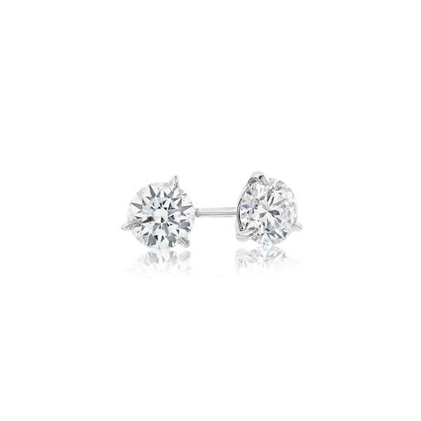 One pair of platinum diamond stud earrings featuring two round brilliant cut diamonds weighing 1.00 ctw, H-I color, SI1-2 clarity. They are approximately 6.50mm in diameter.The diamonds are set in three prong martini mountings with friction backs. Designed by Kwiat. Visit our Indianapolis/Fashion Mall Commons store to view our entire Kwiat collection.