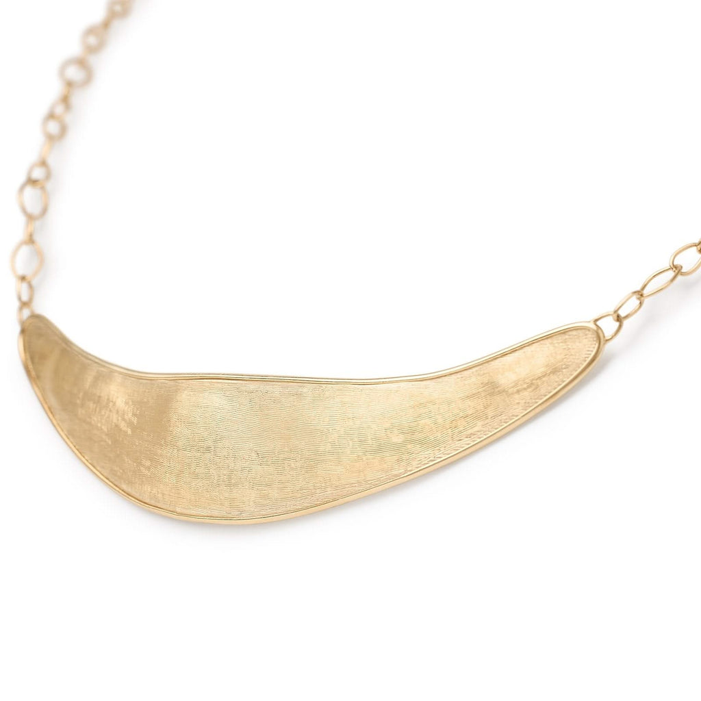 18K yellow gold Lunaria half collar necklace measuring 16.5" in length. Designed by Marco Bicego.