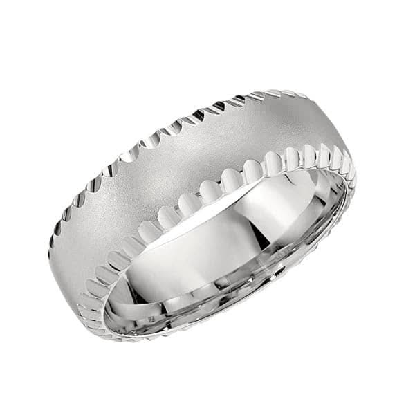 Men's 14K white gold low dome wedding band from the Reis-Nichols Collection. Special order sizes also available. Pricing may vary with size of ring. Visit either our Indianapolis/Fashion Mall Commons or Greenwood store to view our entire collection of more than 1,000 men's wedding bands.