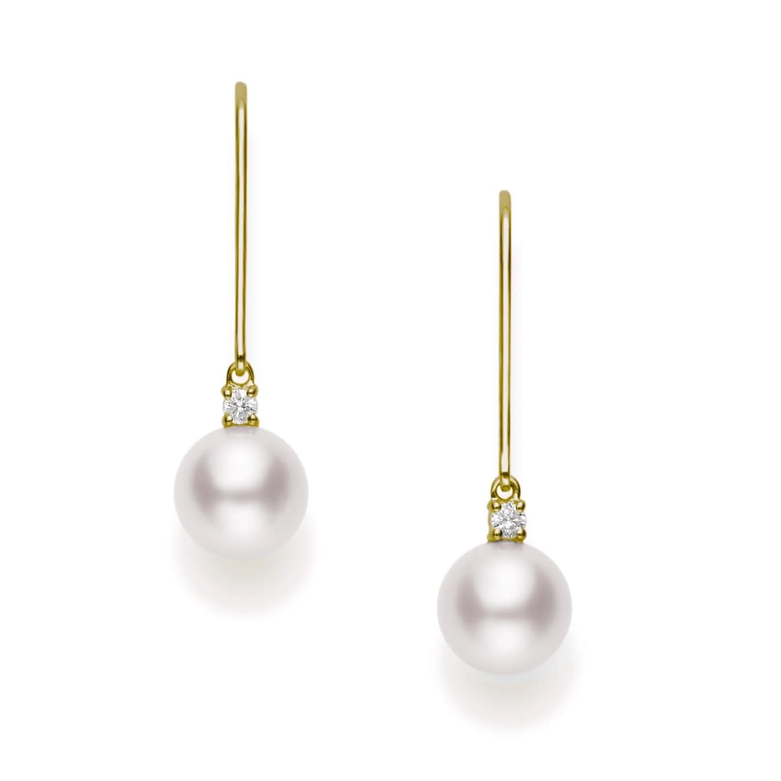 MIKIMOTO Yellow Gold Akoya Pearl & Diamond Drop Earrings