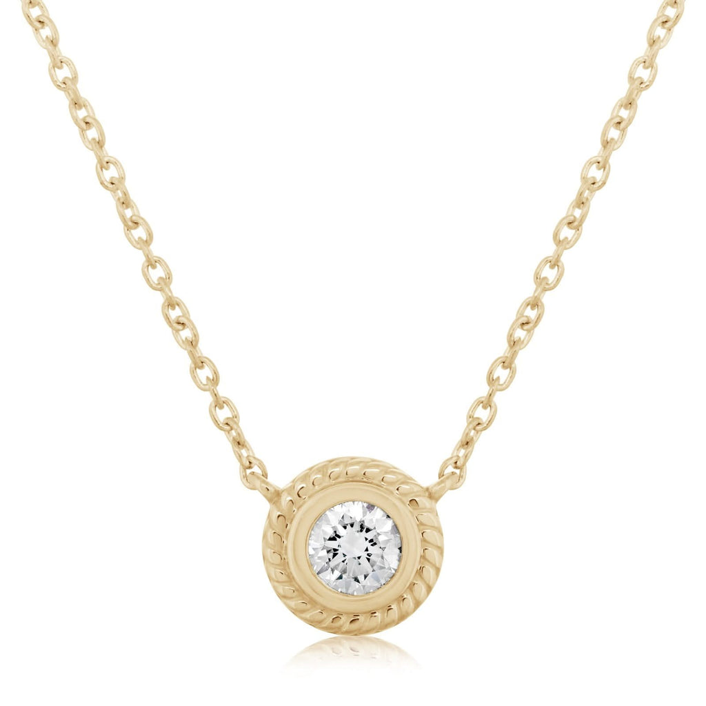 18K yellow gold engraved diamond necklace featuring one round brilliant cut diamond weighing .20 ct. The necklace is adjustable from 15-16" in length. Designed by Penny Preville.