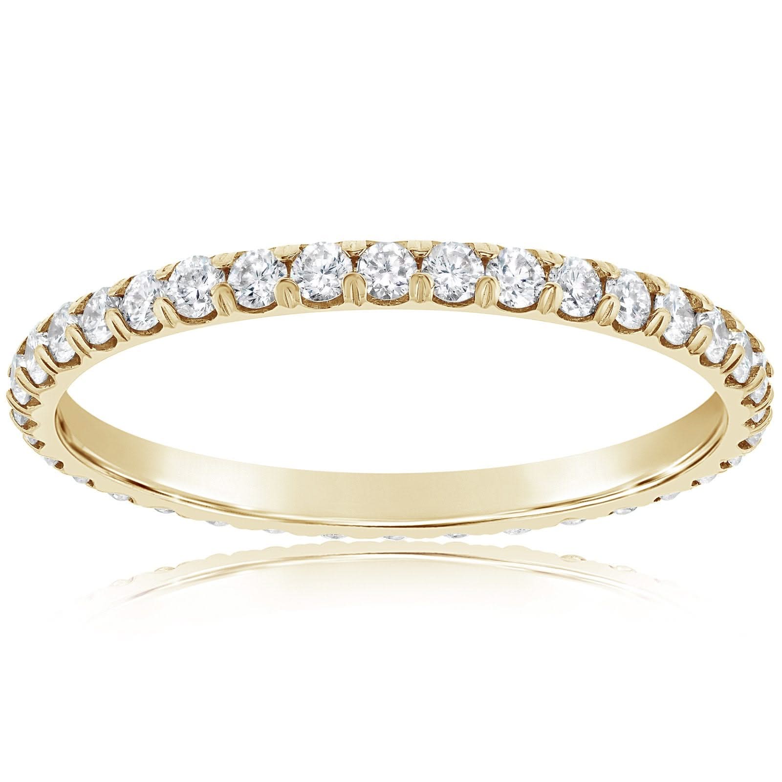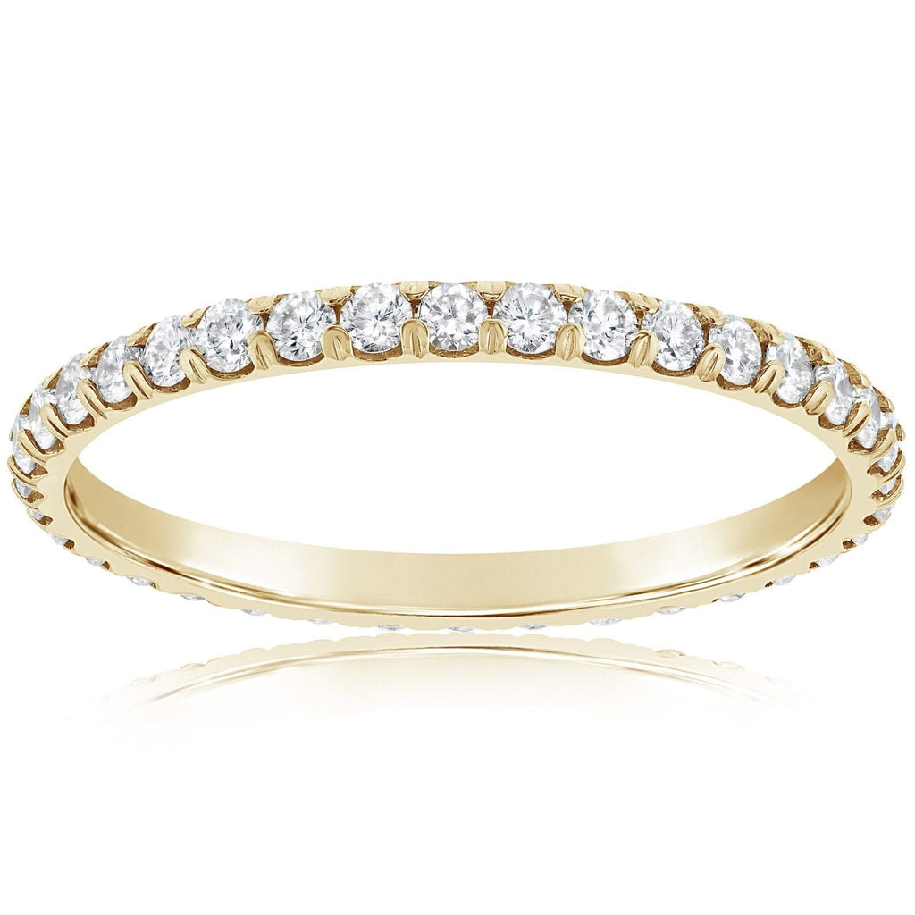 14K yellow gold diamond eternity band from the Reis-Nichols Collection. The band features 38 round brilliant cut diamonds weighing .63 ctw. Size 6.5 in stock now. Special order sizes available. Pricing may vary.