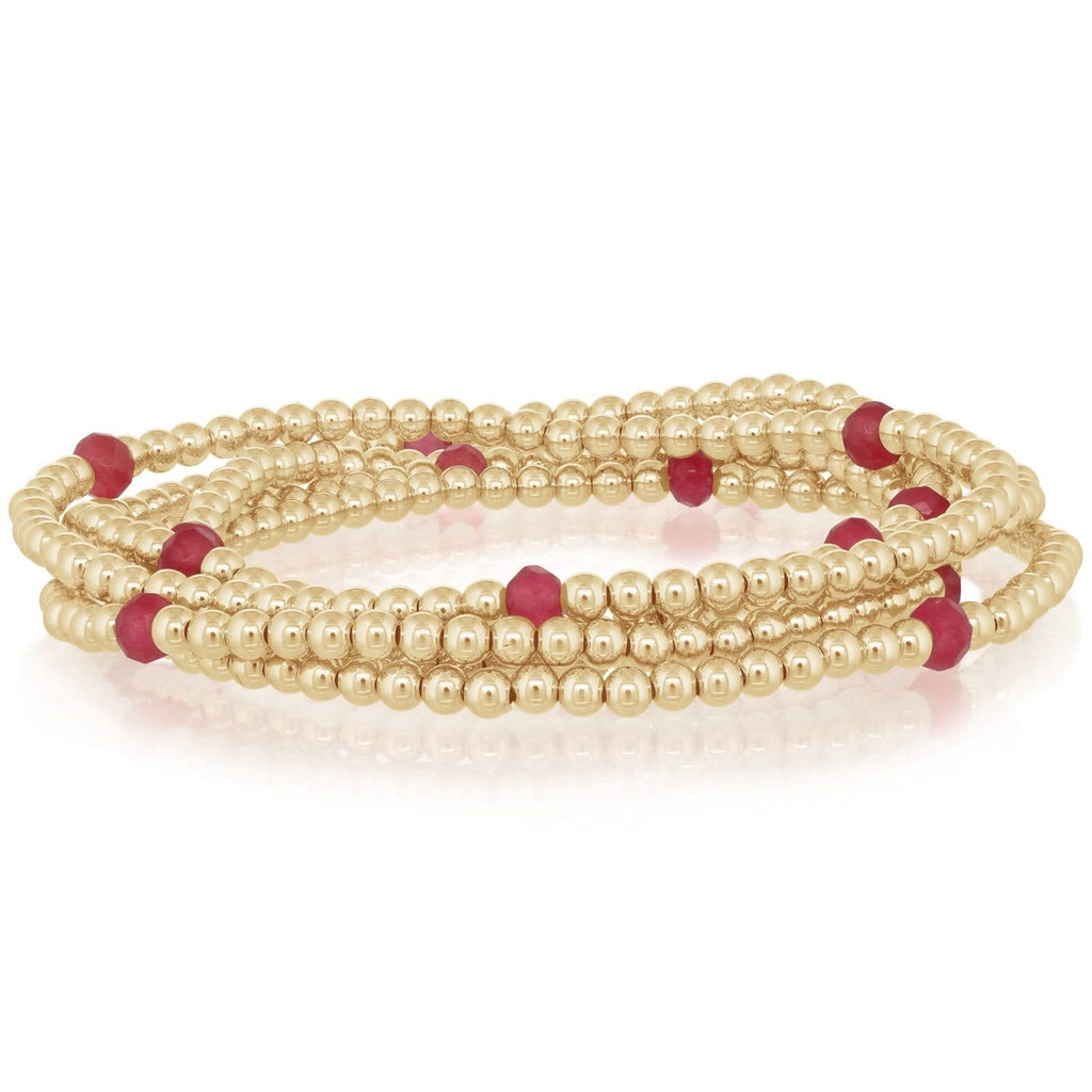 Pink Agate & Gold Filled Beaded Bracelet Stack