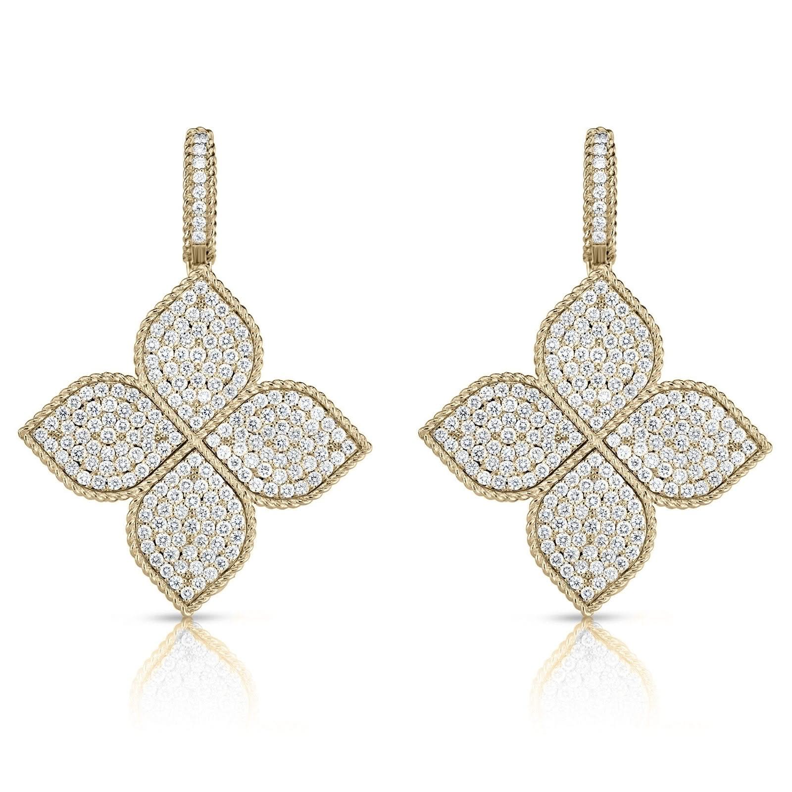 ROBERTO COIN Princess Flower Large Pave Diamond Drop Earrings
