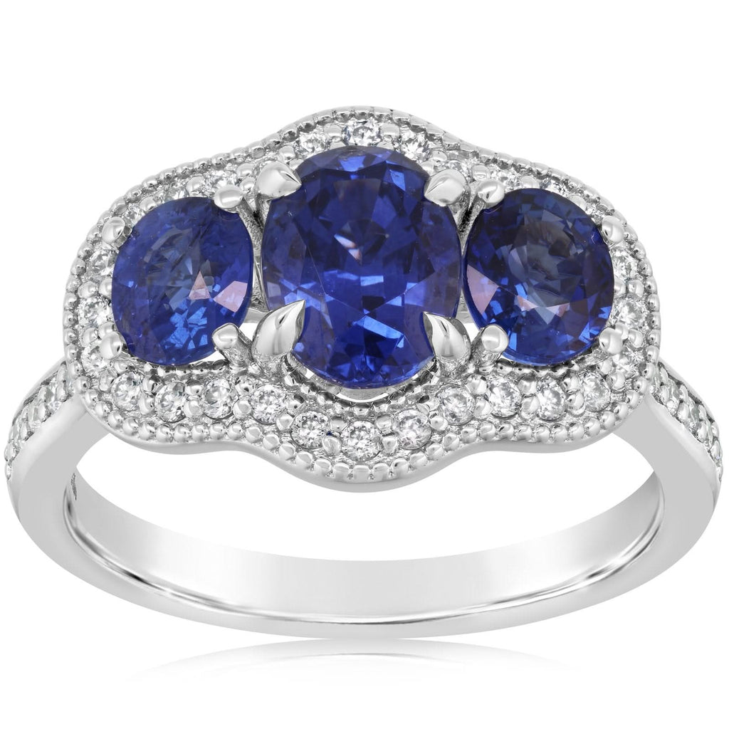 Sapphire & Diamond Ring with Milgrain Details