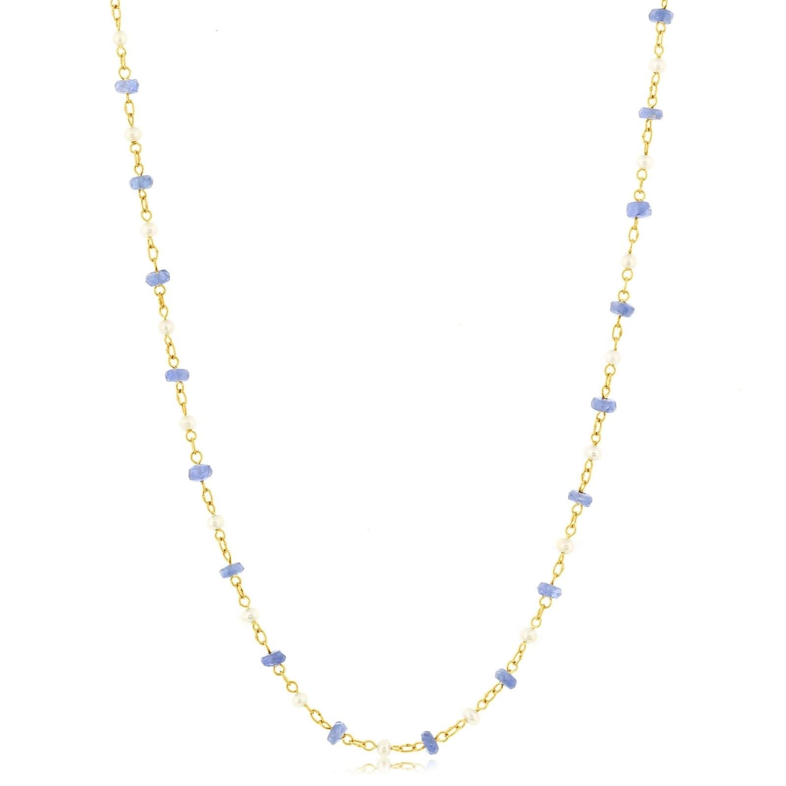 Sapphire & Pearl Station Bead Necklace