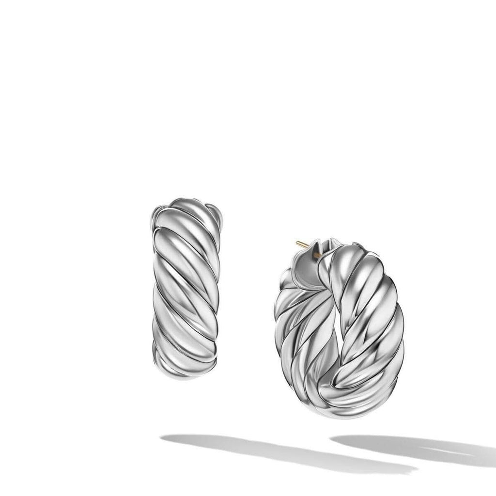 Sculpted Cable Hoop Earrings in Sterling Silver, 25mm