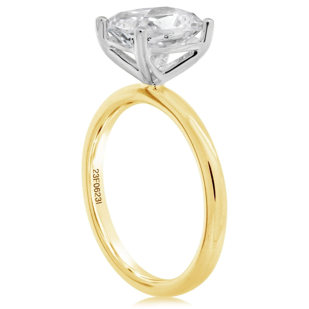 14K yellow gold solitaire engagement ring setting. The ring setting is designed for a 3 ct cushion cut center diamond. Center sold separately. Size 6.5 in stock now. Special order sizes available. Pricing may vary with size.
