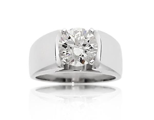 14K white gold solitaire engagement ring designed and created by Reis-Nichols Jewelers. The ring is designed to hold a 2 ct round center diamond. Center diamond sold separately. Size 6 in stock now. Special order sizes also available.