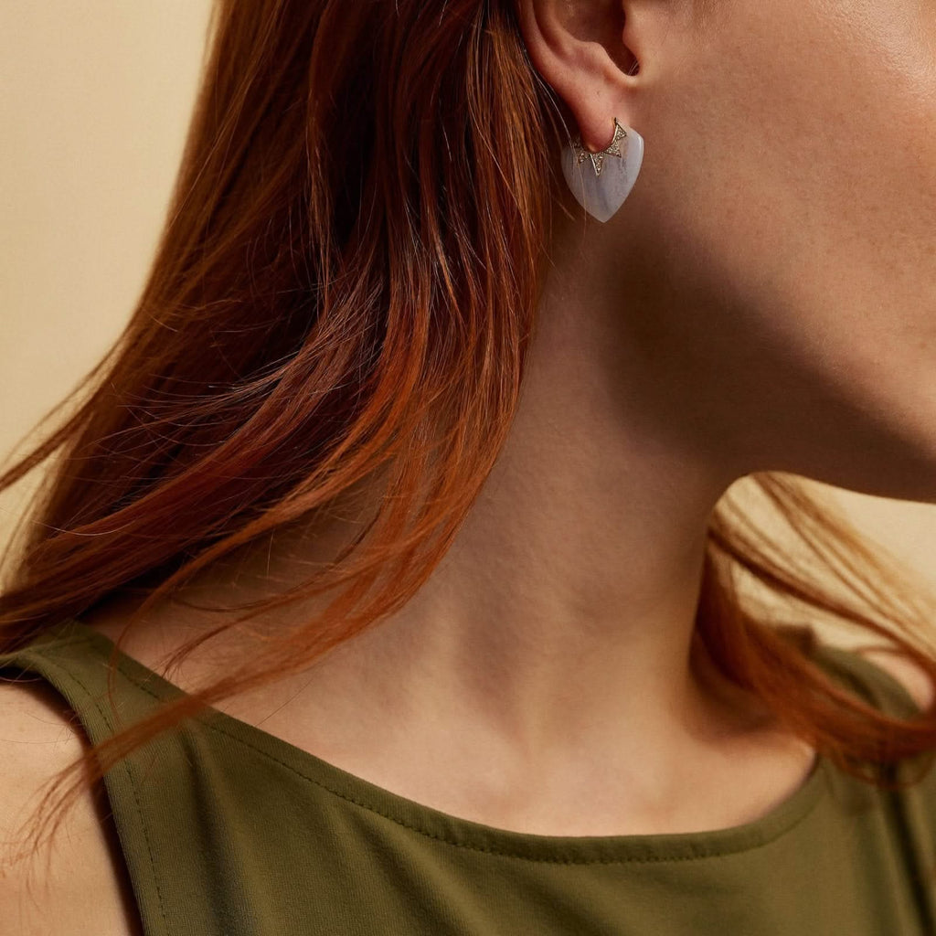 SORELLINA Blue Lace Agate & Diamond Classic Guitar Pick Earrings