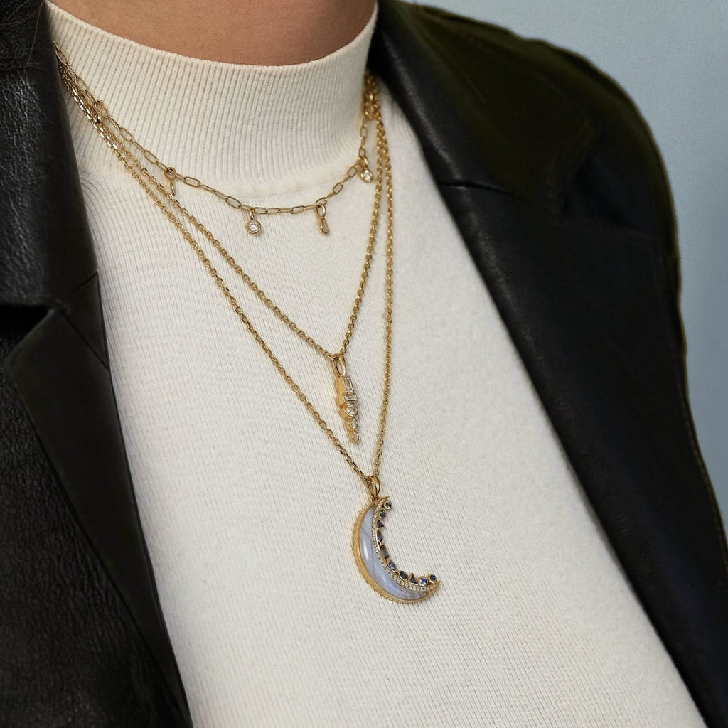 SORELLINA Blue Lace Agate Crescent Moon Pendant